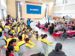 当天,云铜小学启动了科技周活动。宾果机器人登台表演炫酷舞蹈,运载火箭模型长征五号、长征七号正式揭幕投入观摩教学,特色学科体验中心植物创意画赛、飞机视图涂装设计与涂彩、空间几何训练、过山车赛……值得一提的是,昆明市中小学科技创新协会高级工程师胡磊团队表演的火箭炮升空、魔变的气球、冰晶玫瑰、喷泉成雾等科技秀节目,也点燃了同学们的热情。
