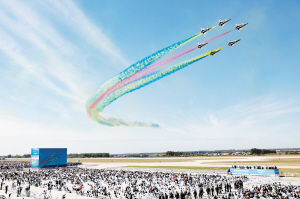 空军八一飞行表演队进行飞行表演。