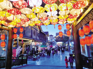 夜幕降临,昆明南强街巷的灯笼次第亮起,来自五湖四海的游客络绎不绝,沿着街道缓缓穿行,悠闲地品尝当地特色小吃,挑选独具云南特色的文创产品;不远处的昆明老街,熙熙攘攘的游客涌进建新园、留焕小吃等老字号品牌店,享用过桥米线、汽锅鸡、调糕藕粉等地道云南美食,老字号的烟火气与游客的满足感在空气中弥漫……