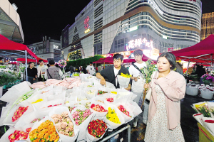 游客在斗南花市买花。记者刘凯达摄